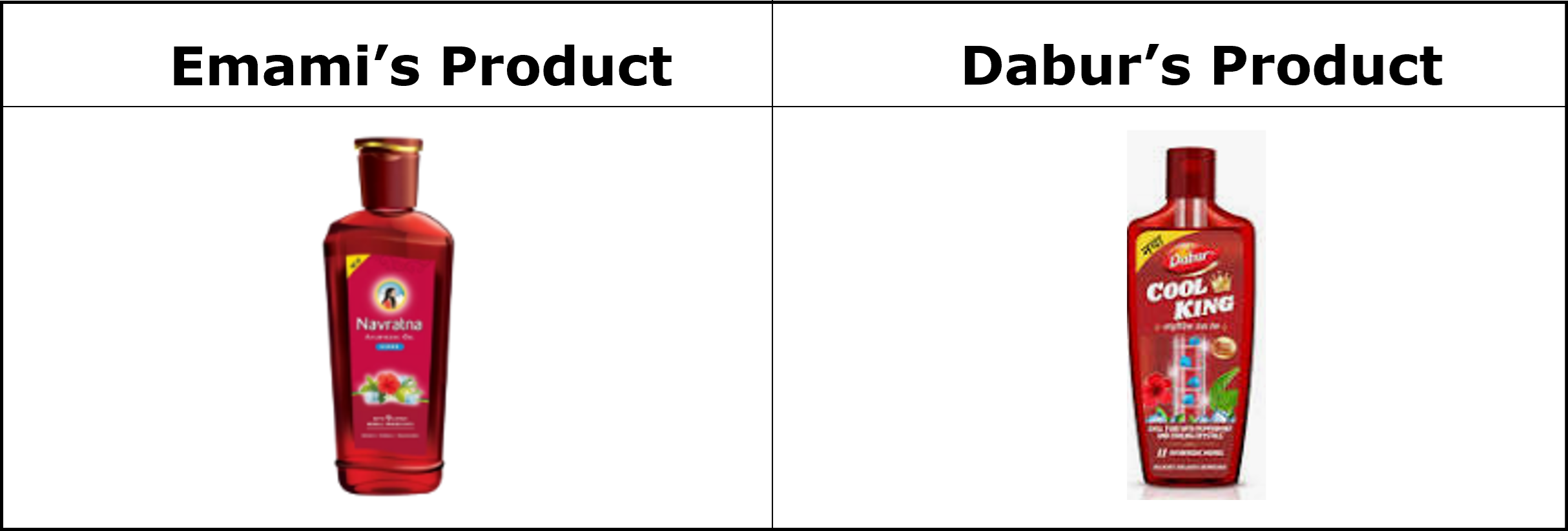 In June 2023, Emami discovered that Dabur had launched a competing cooling oil product packaged in red bottles allegedly resembling Emami’s trade dress. According to Emami, Dabur’s packaging mirrors its distinctive combination of red colour scheme, bottle shape, flip-cap, liquid colour, layout, ingredient imagery (hibiscus, ice cubes, herbs), descriptive expressions, and overall visual presentation